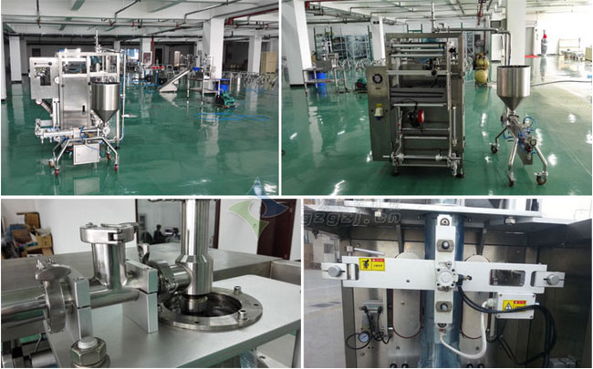 2、② 火锅底料包装机:将火锅底料、汤料均匀搅拌并灌装到包装袋中。